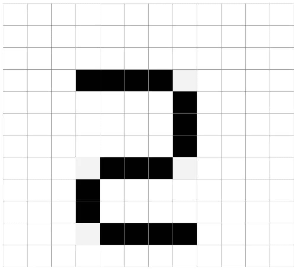 Let’s dive into a practical example of how neural networks work—recognizing handwritten numbers. Imagine a 12×12 grid representing a grayscale image of the number “2,” where each grid square corresponds to a pixel with a grayscale value between 0 (black) and 1 (white).